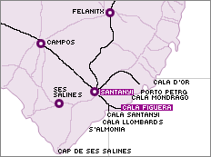 | Sortint de Palma o l'aeroport, agafar l'autopista en direcció Santanyí. Passar per Llucmajor i Campos. No tindrà problemes perque la ruta es troba notablement senyalitzada. |